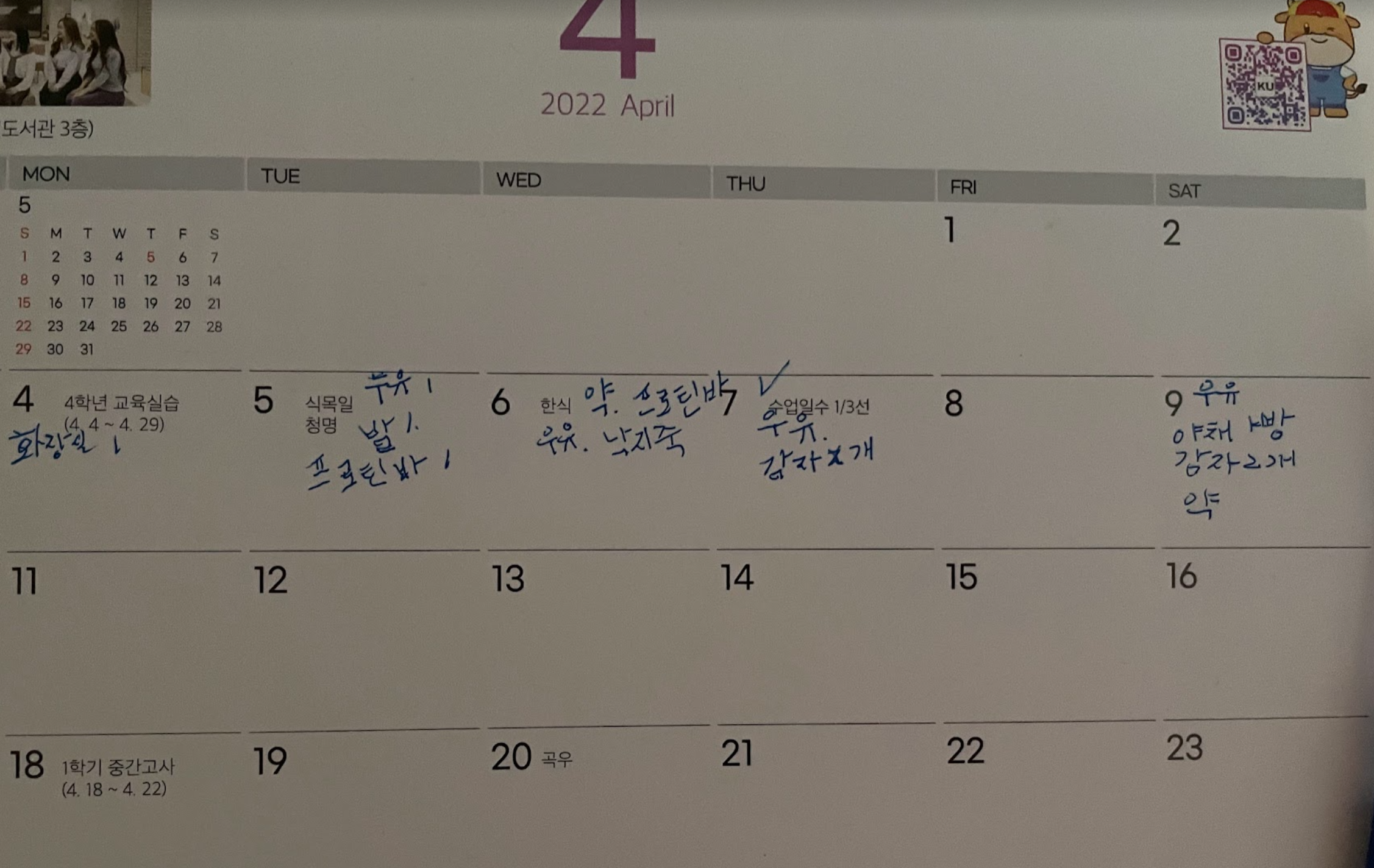 어머니가 계시던 방에 작은 탁상 달력에는 매일 드셨던 것들을 스스로 적어두셨었습니다. 정말 아름다운 글씨체를 가지고 계셨는데, 뇌전이와 전뇌 방사선 치료하고, 기력이 떨어지시고는 글자도 쓰기 어려워 하셨습니다.